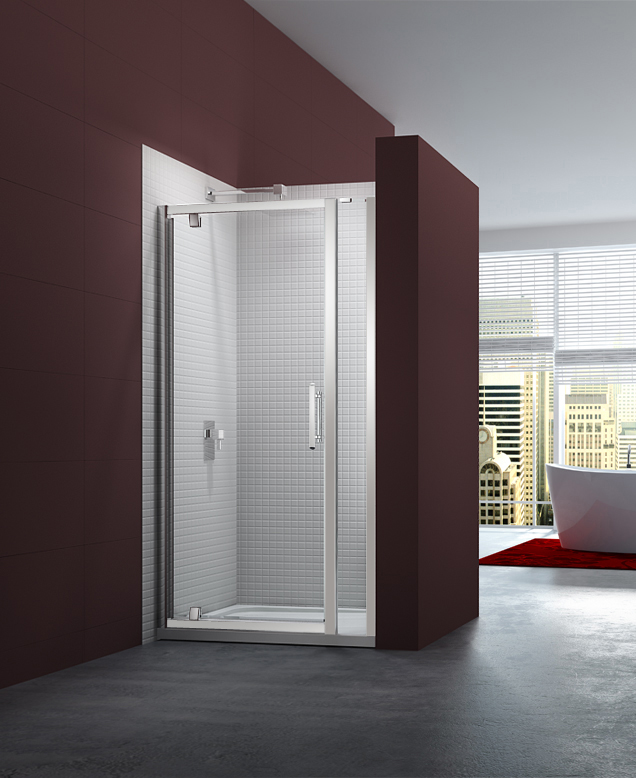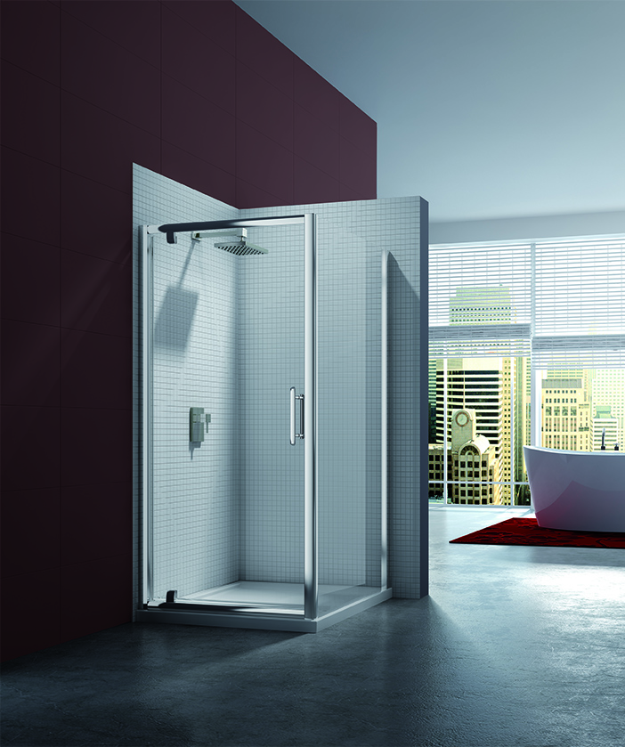 Available in a range of sizes this 1900mm high, the 6 Series Pivot Door is a chic space saving solution – the 8mm toughened safety glass door pivots on elegant chrome mechanisms allowing the door to open outwards, with part of the door opening into the showering space thus saving space. With the addition of the minimalist glass edged side panel, this shower enclosure is perfect for any corner situation. With Mershield Stayclear protected glass as standard within the Series 6 range, this door is “Easy clean”. All 6 Series shower enclosures have our Lifetime Guarantee.